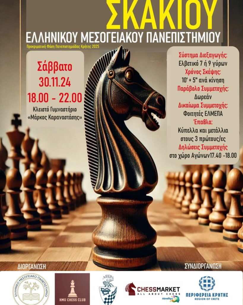 1o Ανοιχτό Πρωτάθλημα Ηρακλείου Γρήγορου Σκακιού (Rapid) CHESS UNDER MOONLIGHT